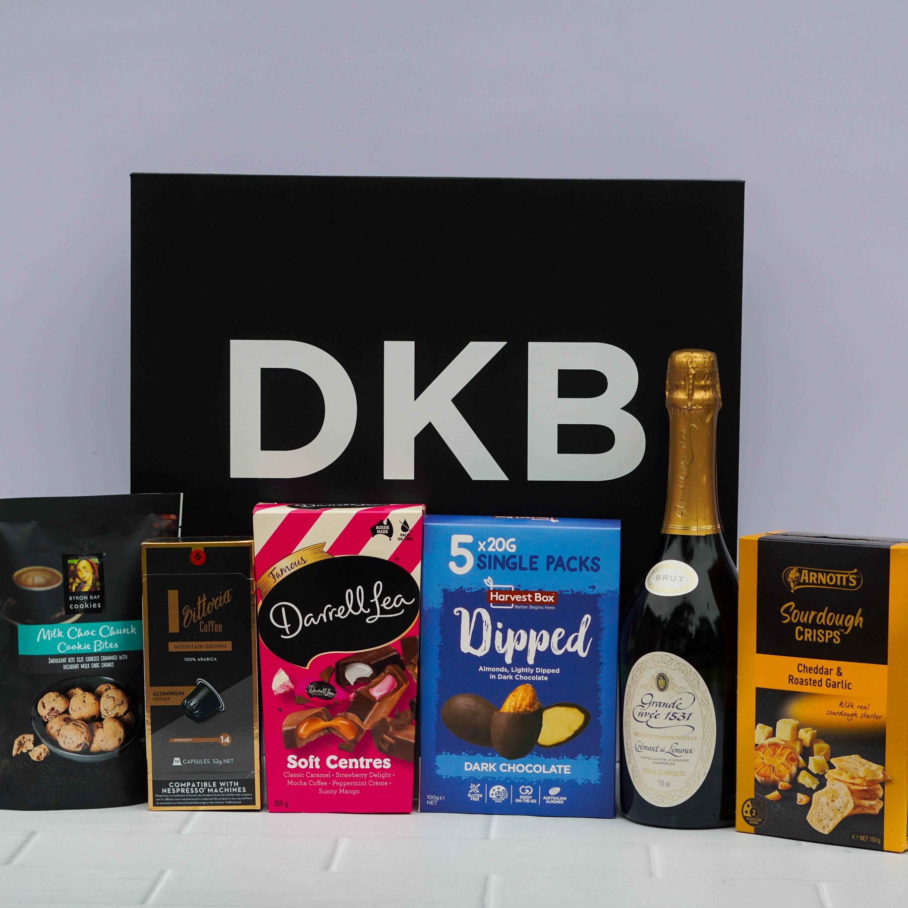 Savour the crunch of artisan crisps, the rich aroma of premium coffee pods, and the decadent pleasure of smooth chocolate and dipped delights. Enjoy a freshly baked cookie made with love and care, and complete the experience with a bottle of Australian Shiraz, bold and full-bodied — a true expression of the land it comes from.
